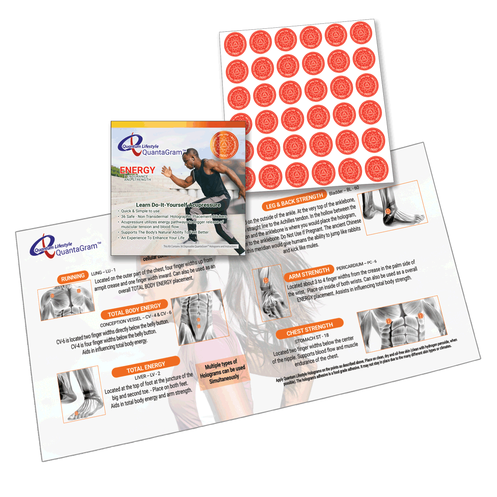 Acupuncture uses tiny needles of different sizes thought to stimulate nerve fibers to release natural pain killers and other chemicals. Others believe the needles act as tiny antennas inserted into Acupoints which can be thought of as tiny ports for frequency communication. Acupressure uses the same principles stimulating these points. Our QuantaGrams are designed to support communication with acupressure points.
